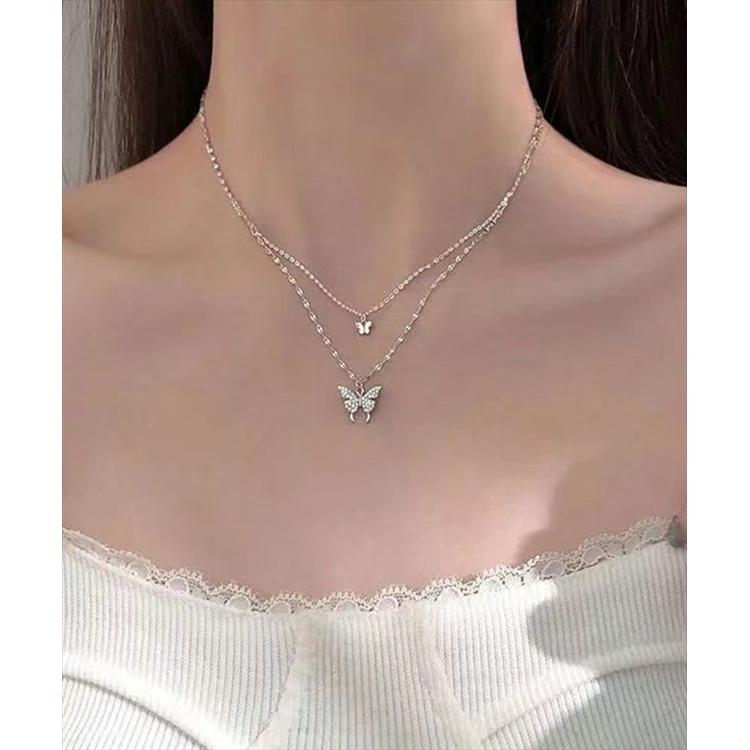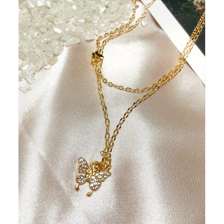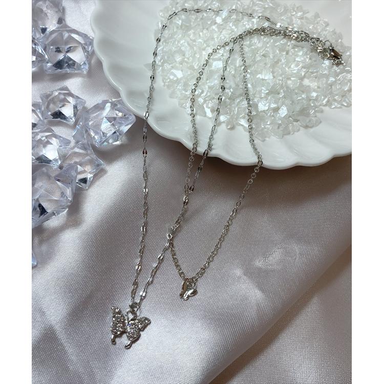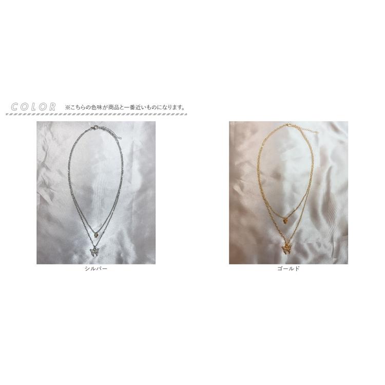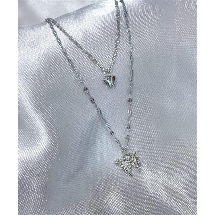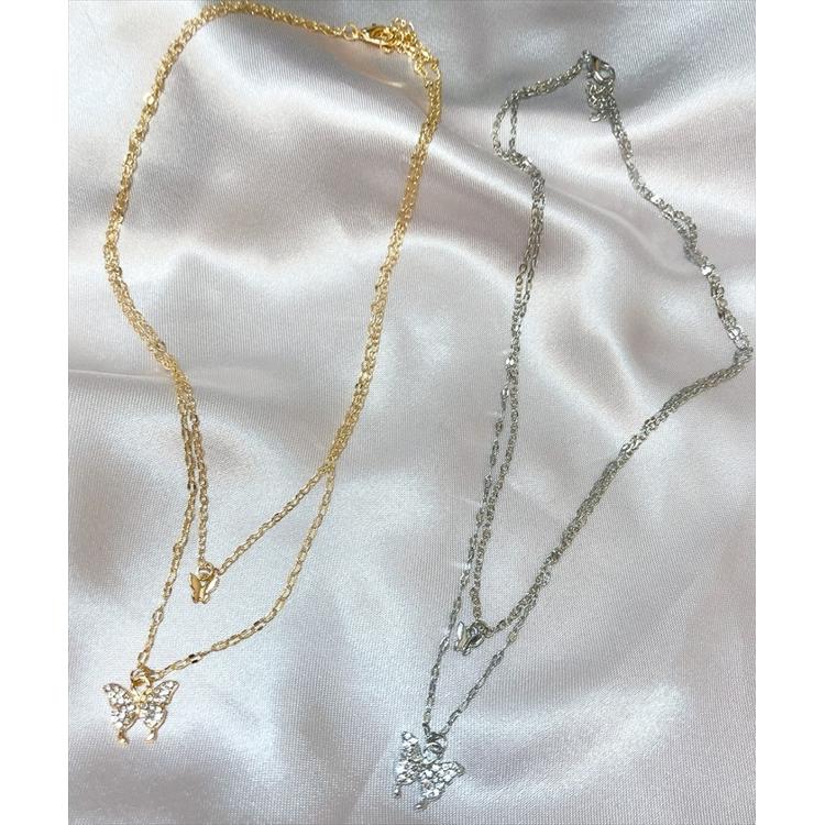 ・大きさの異なる2匹の蝶とデザインの異なる二連の細身チェーンが首元を一気に華やかに演出。