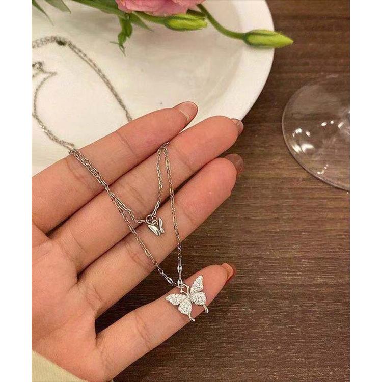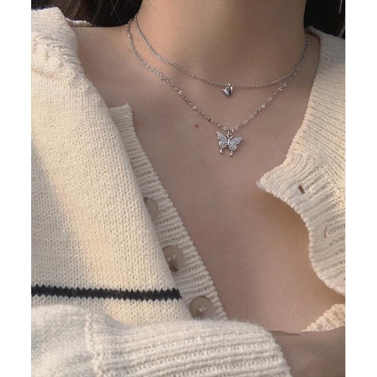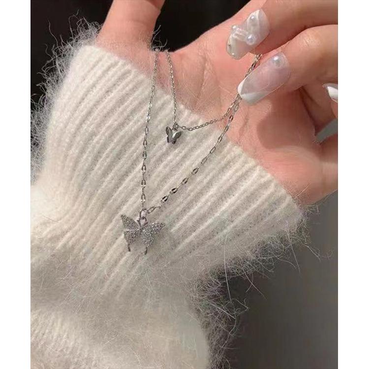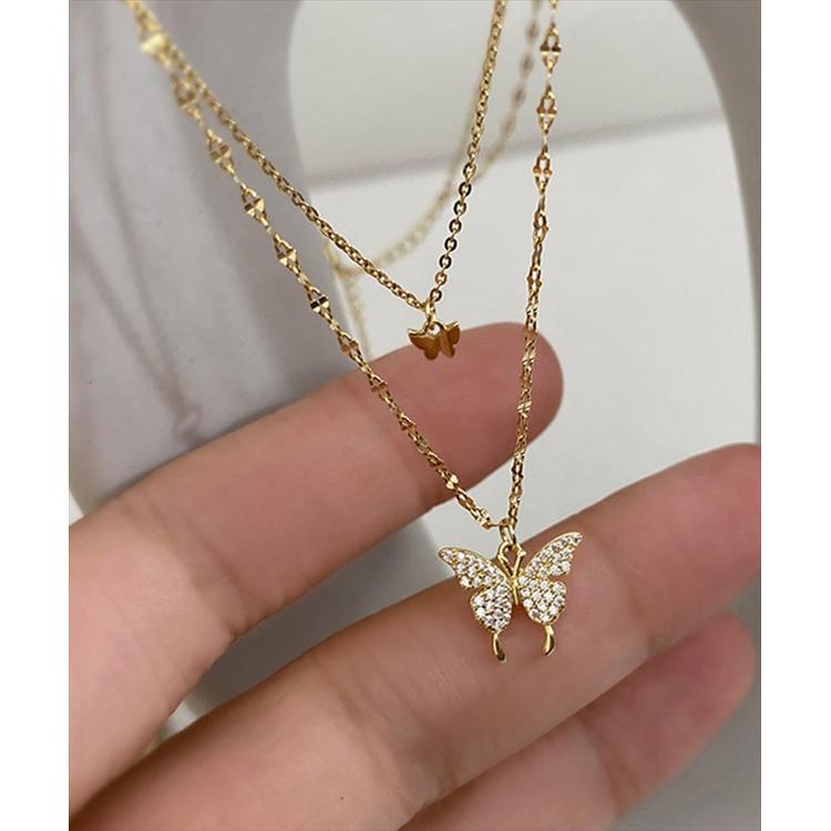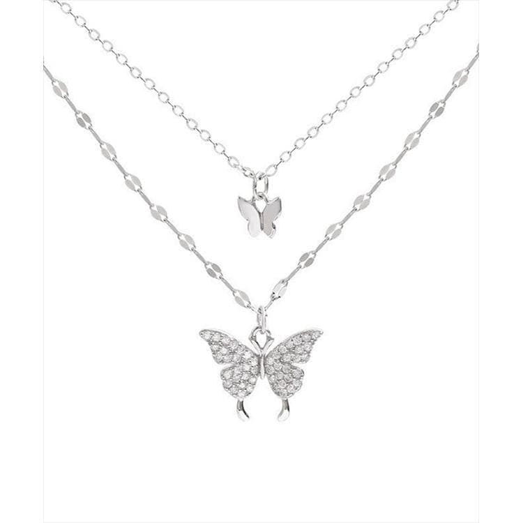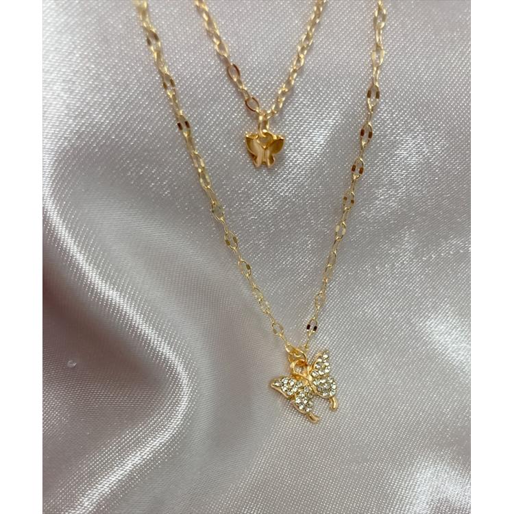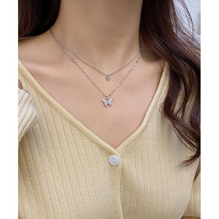 ・大きさの異なる2匹の蝶とデザインの異なる二連の細身チェーンが首元を一気に華やかに演出。