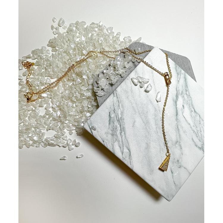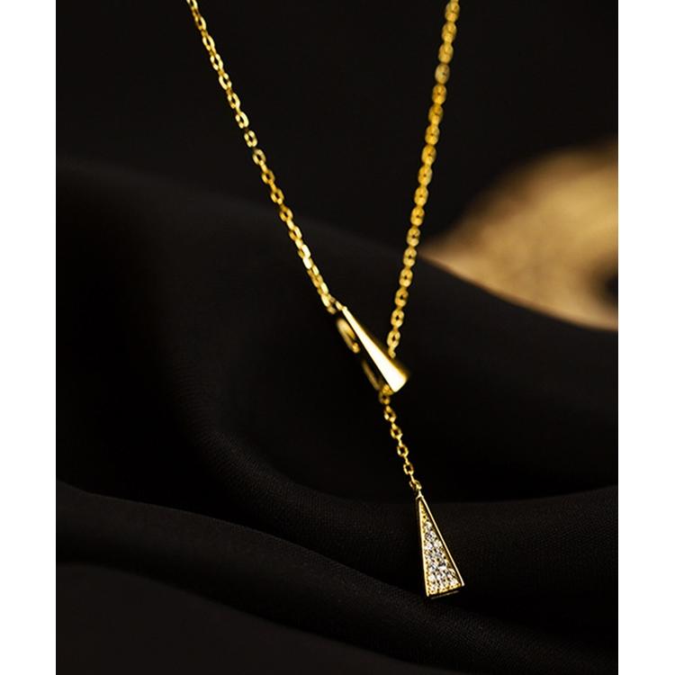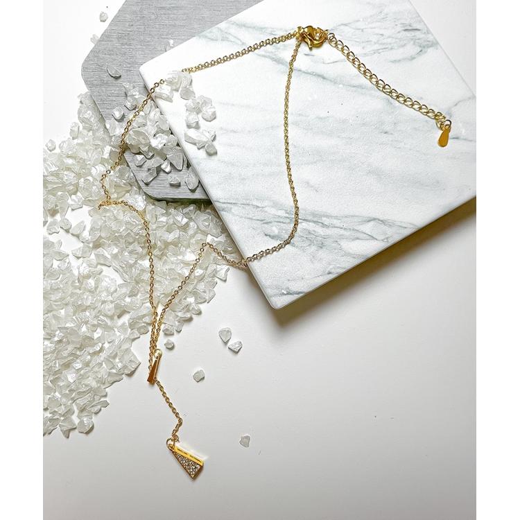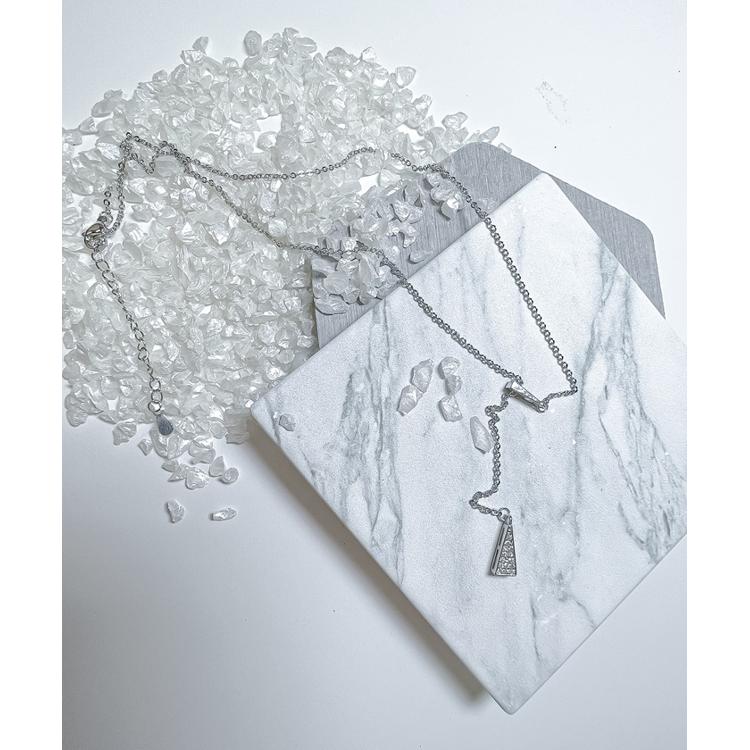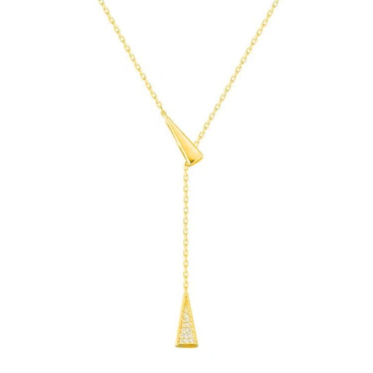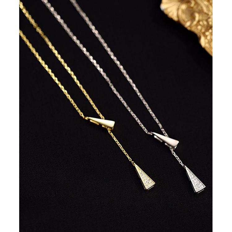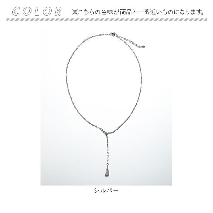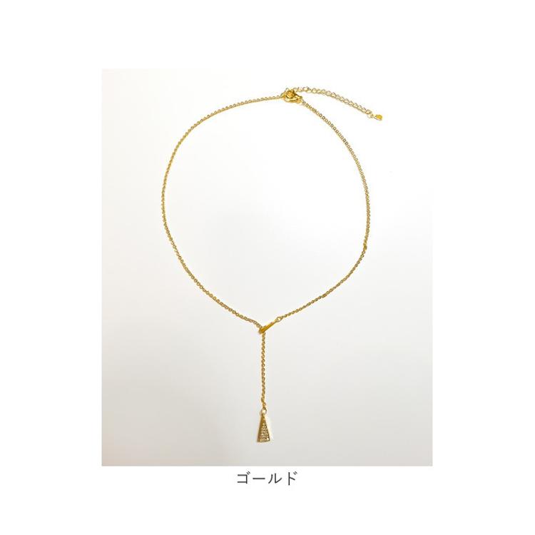 商品説明・先端のトライアングルパーツがスタイリッシュな印象のY字ネックレス。