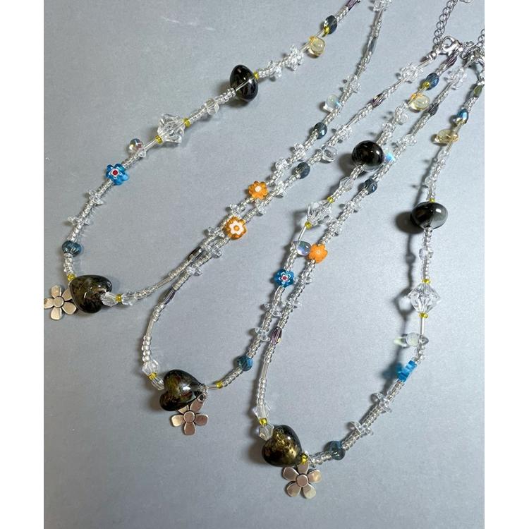 ・カラフルなビーズやハート、花のチャームがポップで目を引き、シンプルなカジュアルスタイルにもインパクトをプラス。