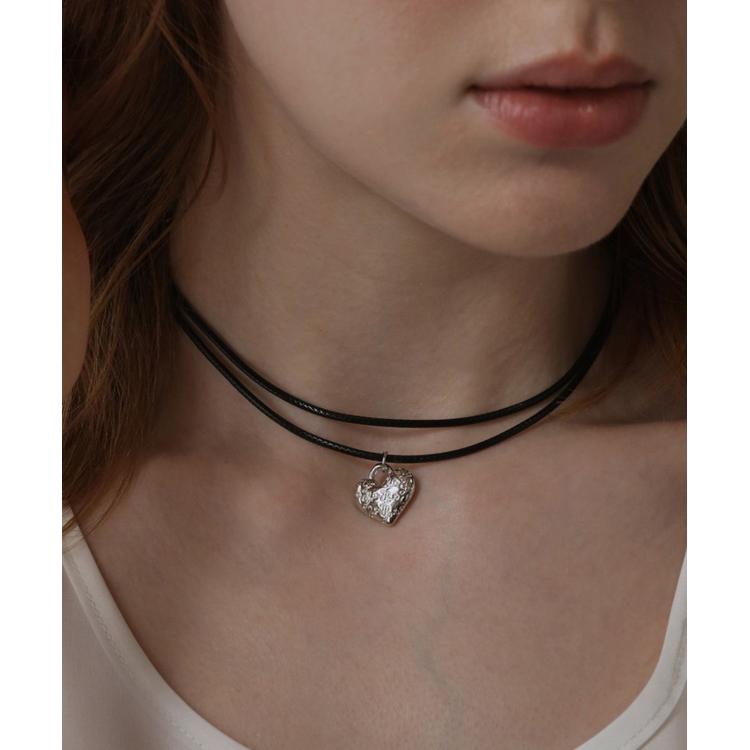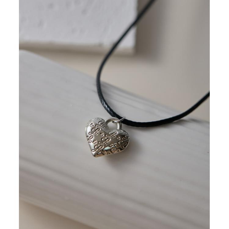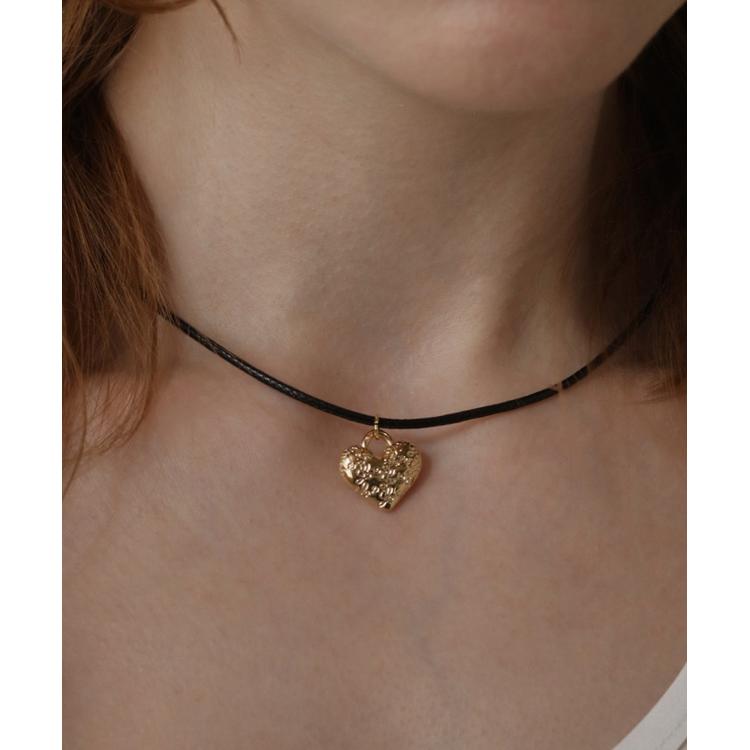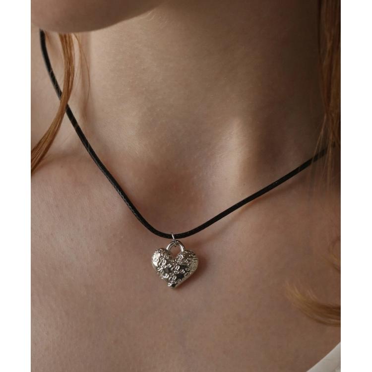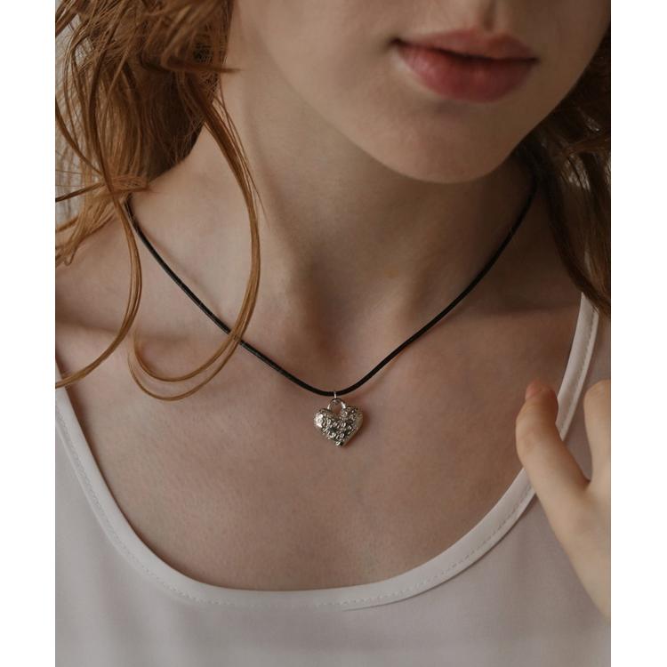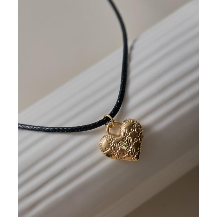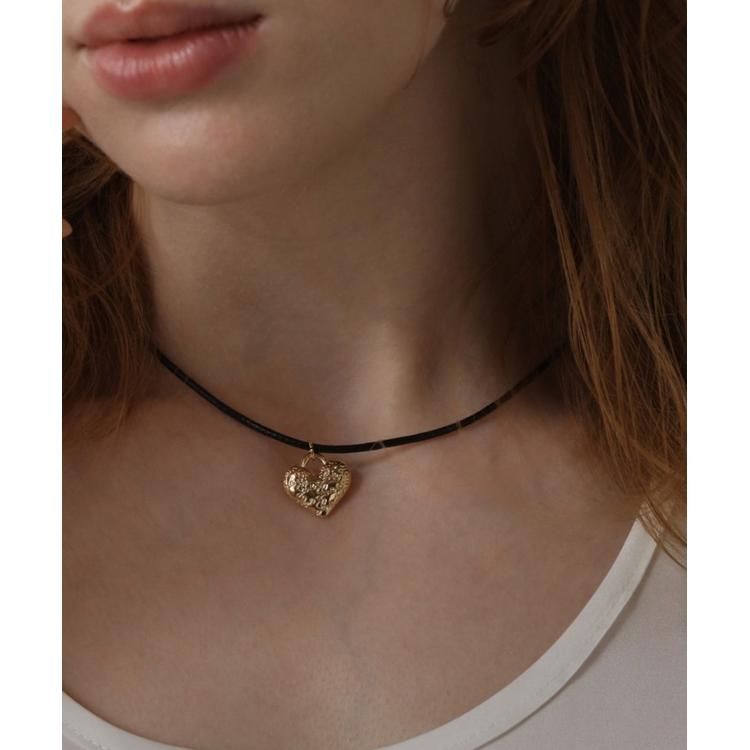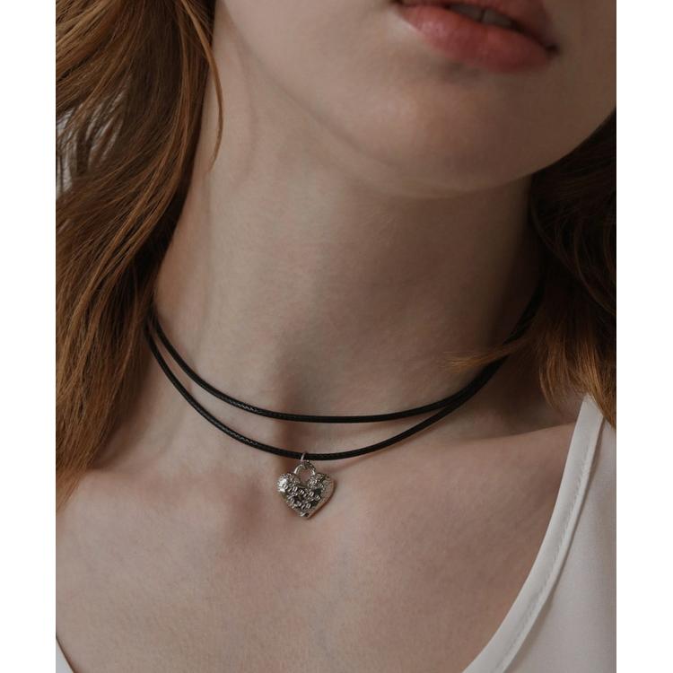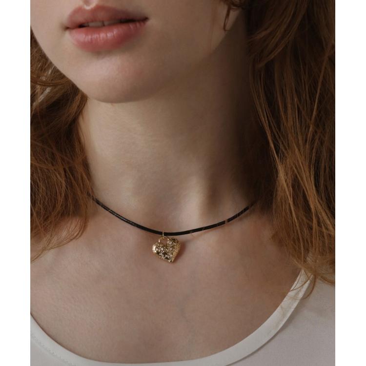・シンプルなコードネックレスがチャームのディテールを際立たせる。