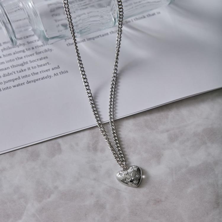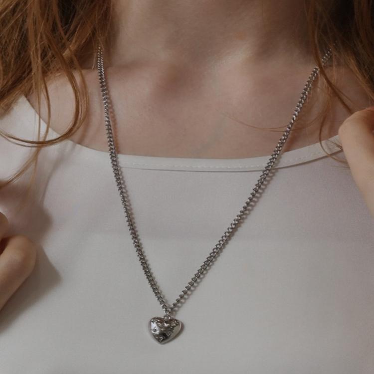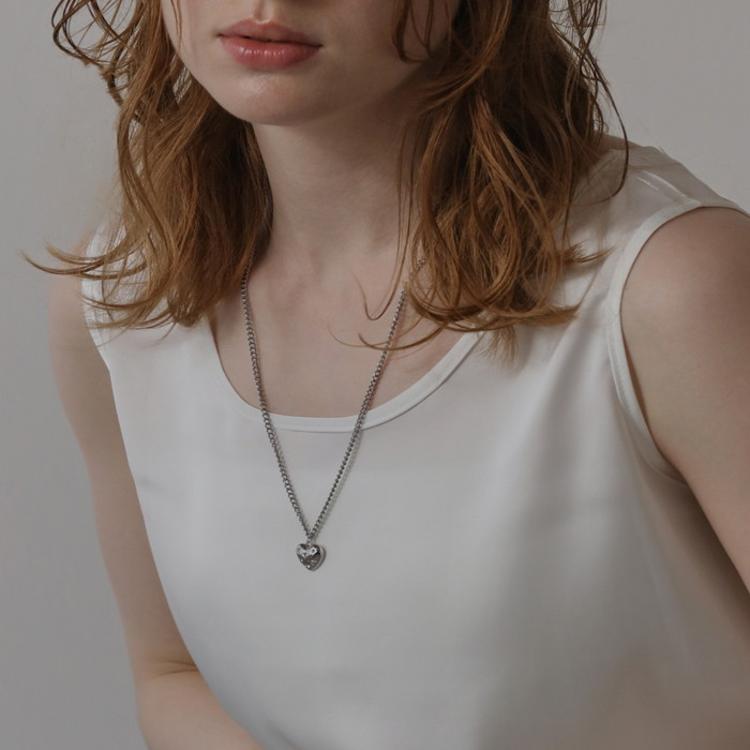 ・首元で揺れる小ぶりなペンダントトップが、女性らしい雰囲気を引き立てる。
