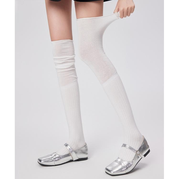・ミニスカートやショートパンツに合わせれば、抜け感のあるトレンドコーデが完成。