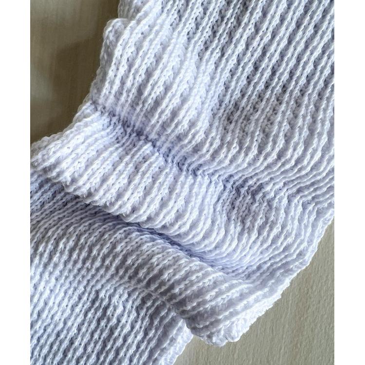 ・伸びの良いリブ編みがふんわりと重なり、脚を細見せしながら存在感たっぷりのシルエットを演出。