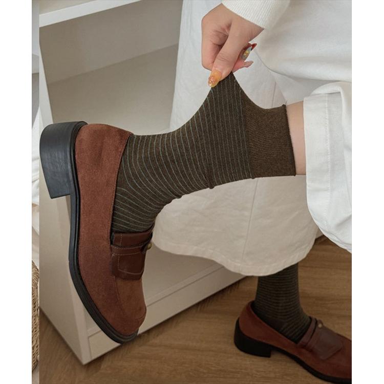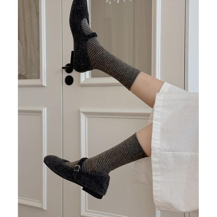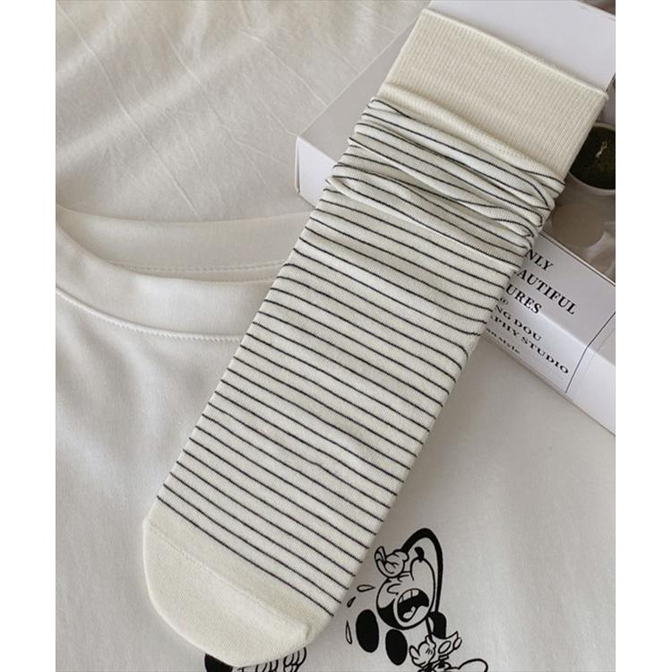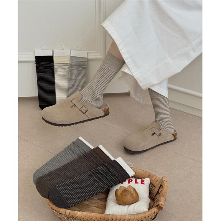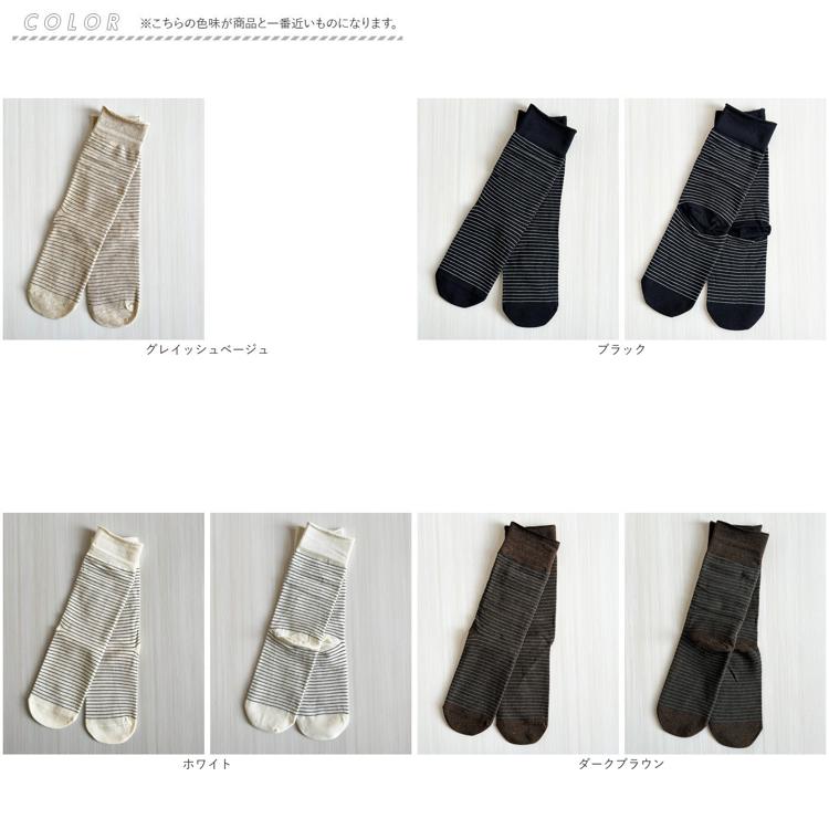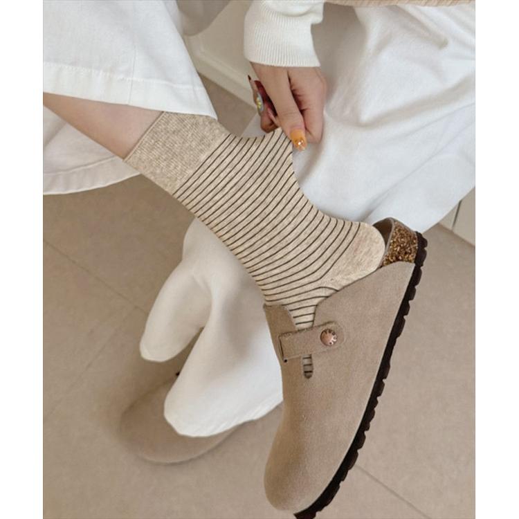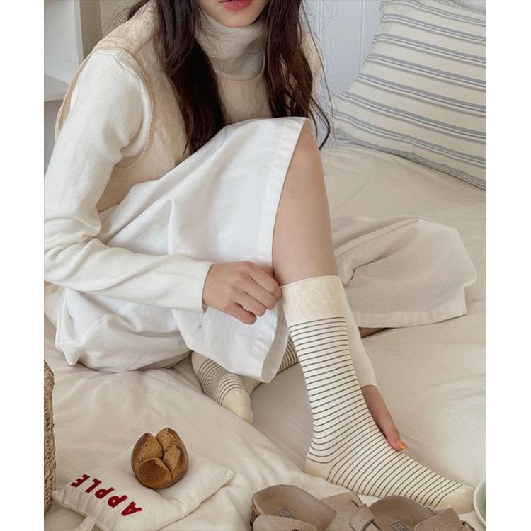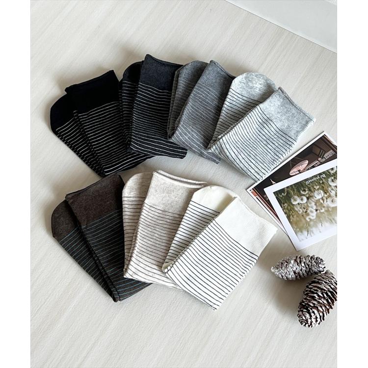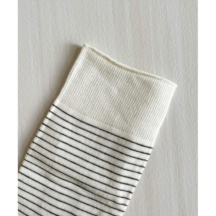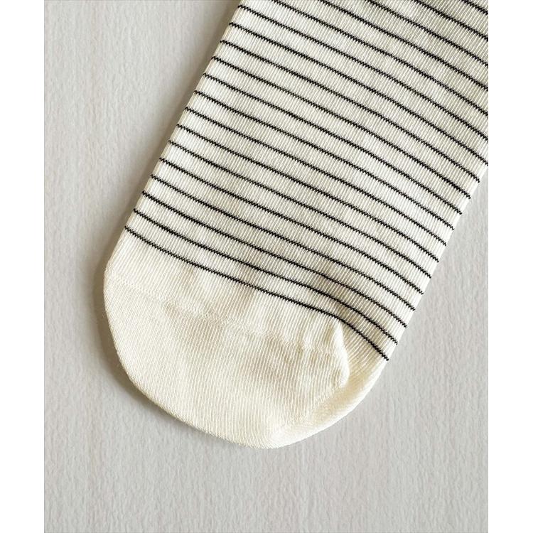 商品説明・細めボーダーが足元をすっきり見せてくれる、ナチュラルテイストのミドル丈ソックス。