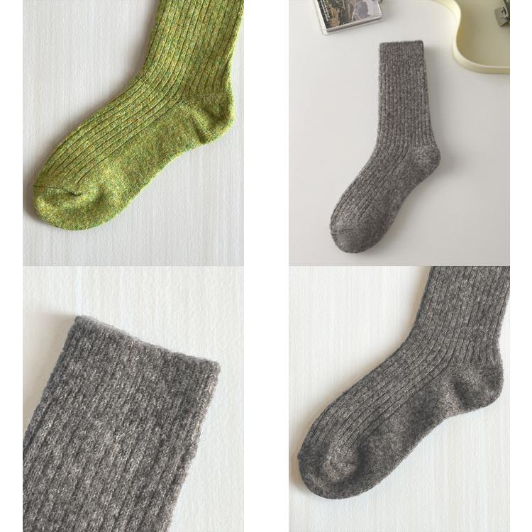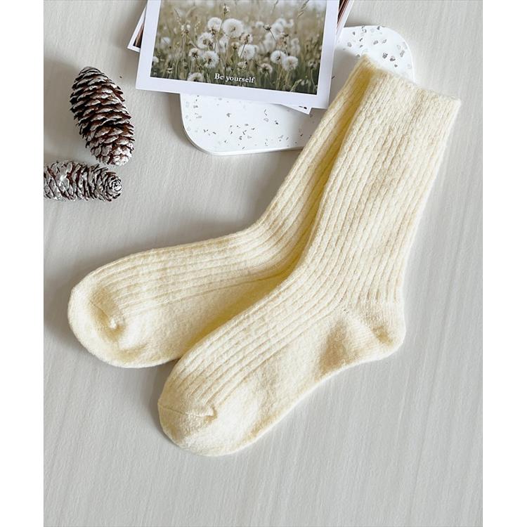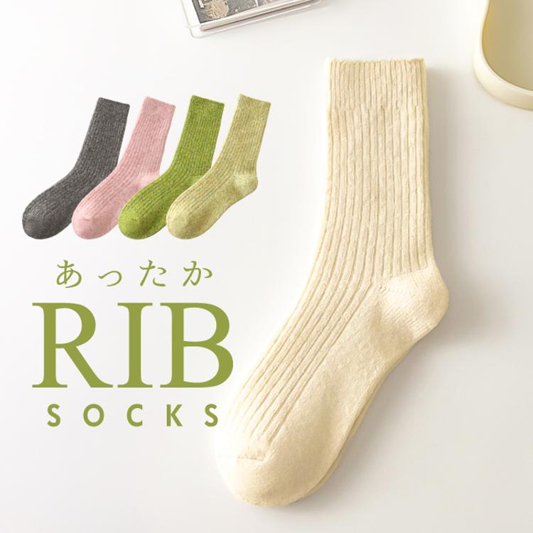 商品説明・やさしい色合いとリブ編みの表情が可愛い、あったかソックス。