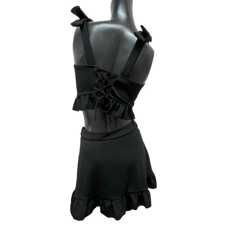 ・背中のレースアップがほどよい抜け感を演出し、大人の女性らしさも引き立ててくれる。