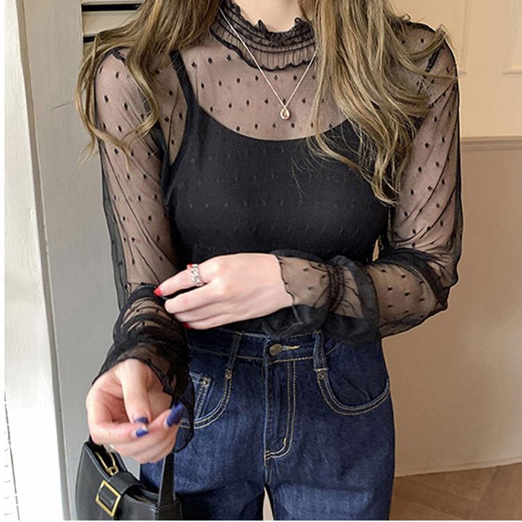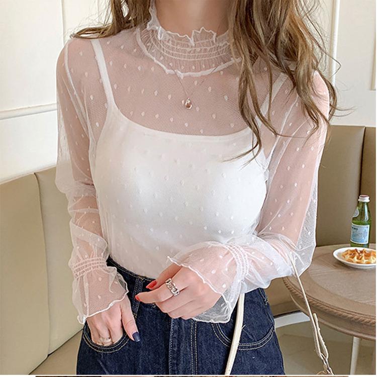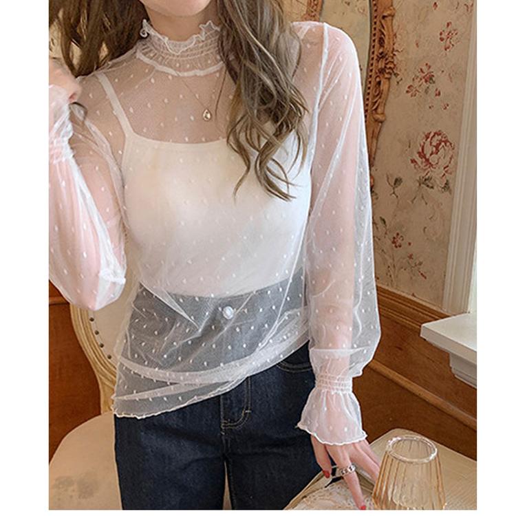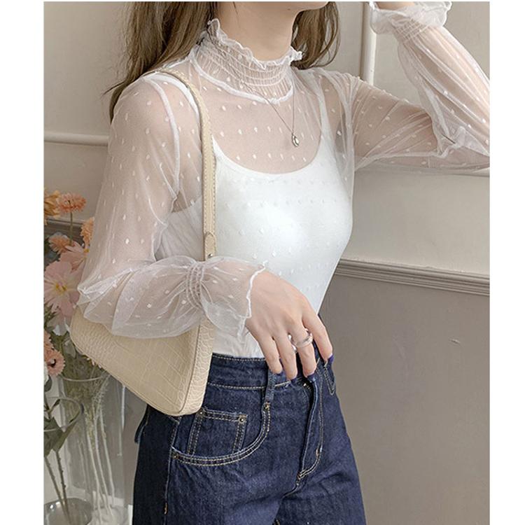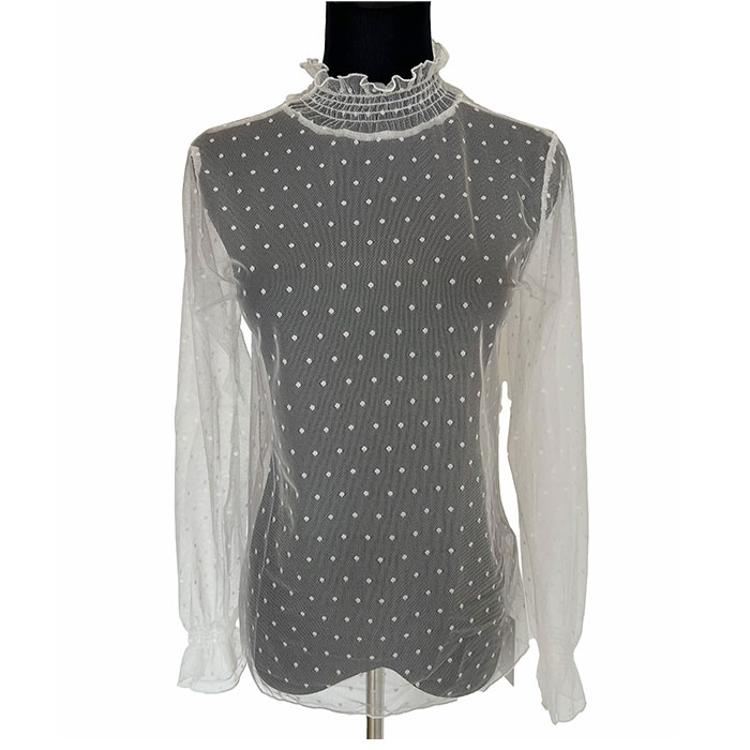 ・ドットチュールデザインで透け感が大人可愛いブラウス。