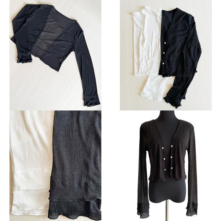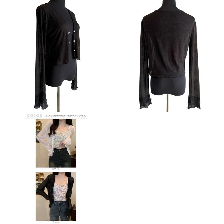 カーディガン レディース ショート丈 通販 シアーカーディガン ボレロ ショートカーディガン カーデガン 羽織もの はおりもの 薄手 長袖 フレアスリーブ トップス 大人 かわいい おしゃれ