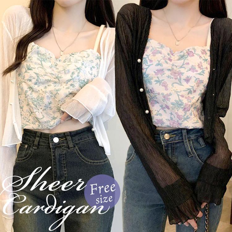 カーディガン レディース ショート丈 通販 シアーカーディガン ボレロ ショートカーディガン カーデガン 羽織もの はおりもの 薄手 長袖 フレアスリーブ トップス 大人 かわいい おしゃれ 女性 top-105 ダイヤモンドハーツ Diamond Hearts
