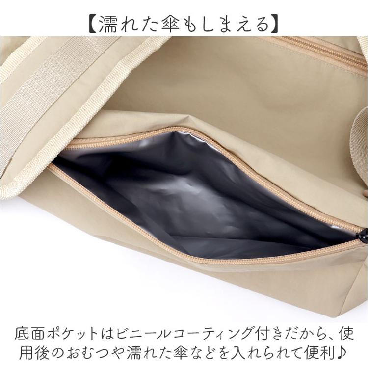 ・底面ポケットはビニールコーティング付きだから、使用後のおむつや濡れた傘などを入れられて便利♪