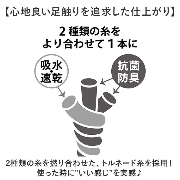 (※1)抗菌防臭と吸水速乾性のある2種類の糸を、撚り合わせております。