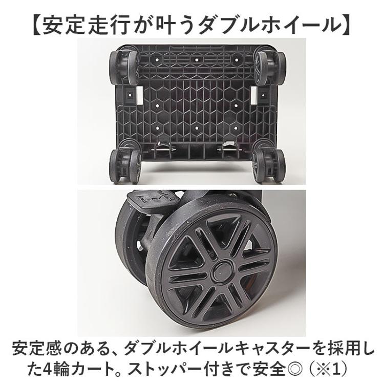 ・安定感のある、ダブルホイールキャスターを採用した4輪カート。ストッパー付きで安全◎