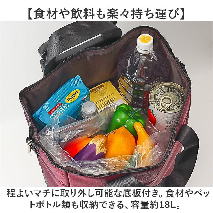 ・程よいマチに取り外し可能な底板付き。食材やペットボトル類も収納できる、容量約18L。
