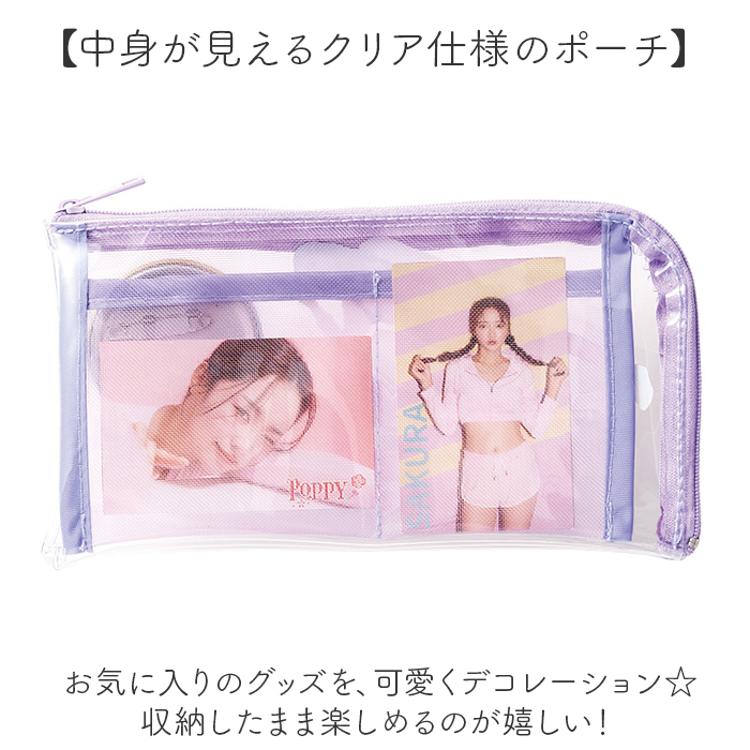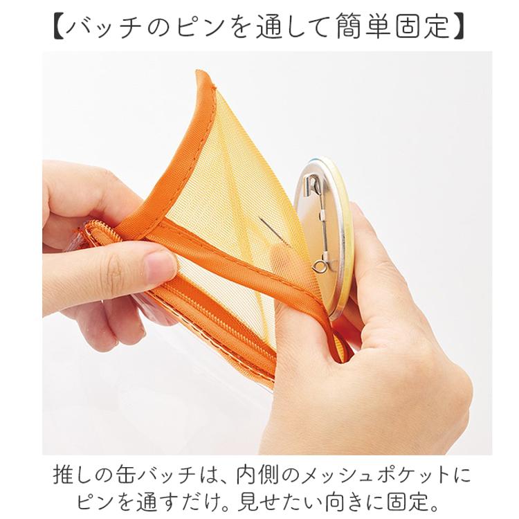 ・推しの缶バッチを固定して持ち歩ける◎「メッシュポケットクリアロングポーチ」。