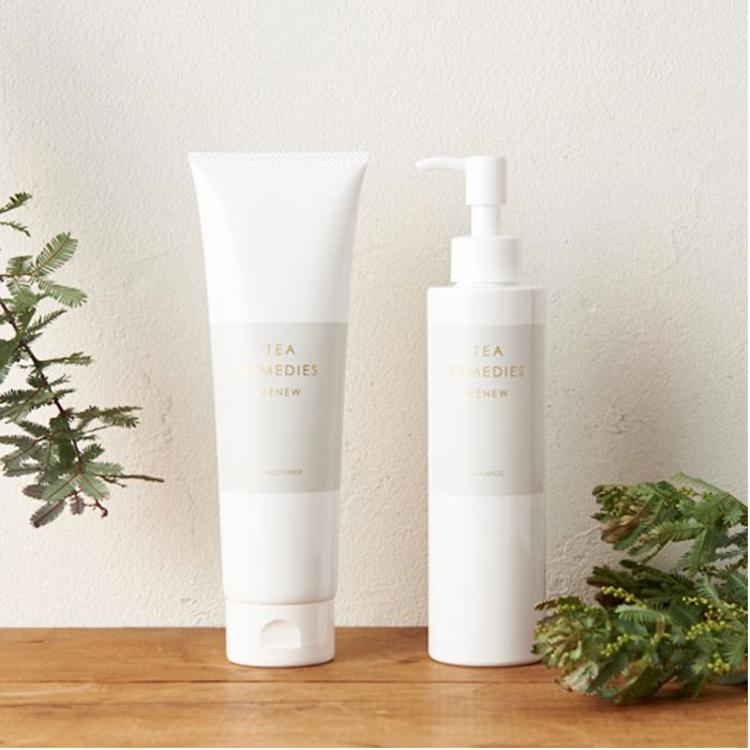 ・RENEWコンディショナーは、アッサムティーの紅茶エキスをベースに、厳選されたハーブエキスやオイル、ハチミツ、高山植物エーデルワイス由来成分を配合。天然由来成分97%で、乾燥やダメージを受けた髪をうるおいで包み込み、しっとりまとまりやすい髪へ整えます。キューティクルを保護し、カラー後の髪色を美しく見せるサポートも。