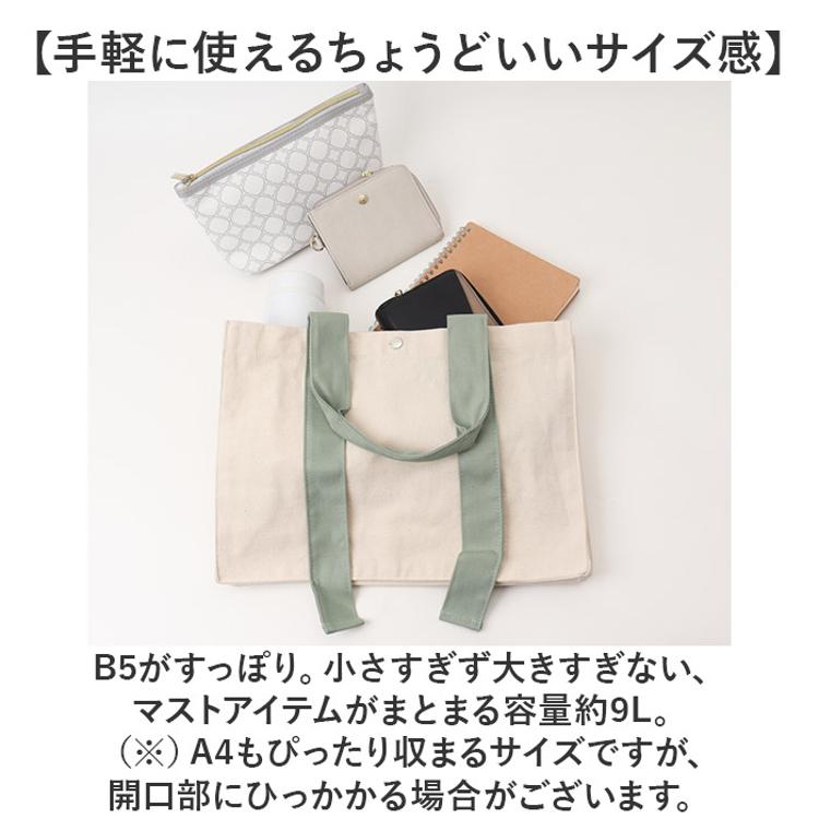 ・B5がすっぽり。小さすぎず大きすぎない、マストアイテムがまとまる容量約9L。