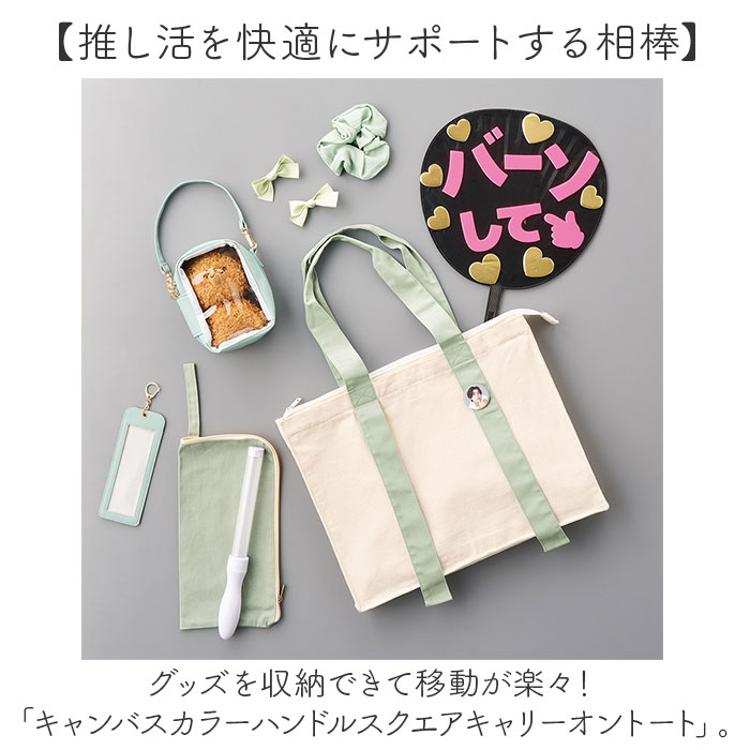 ・グッズを収納できて移動が楽々!「キャンバスカラーハンドルスクエアキャリーオントート」。