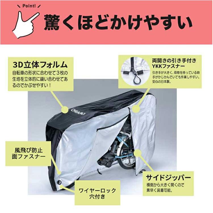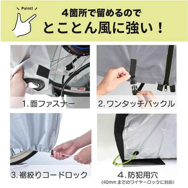 ・風飛び防止機能付きだから、強風の日でもカバーがめくれる心配なく駐輪場でも快適♪