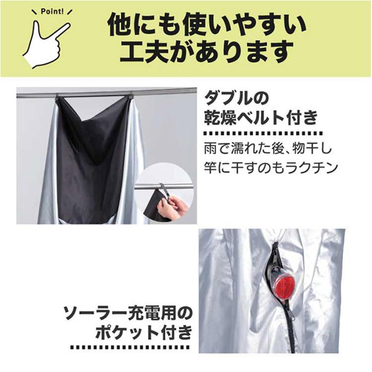 ・電動自転車を雨風からしっかり守る大型サイクルカバー。