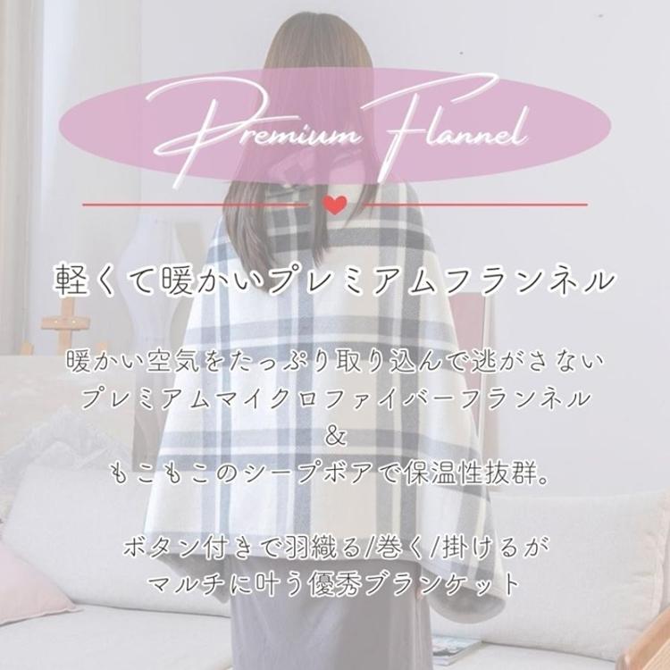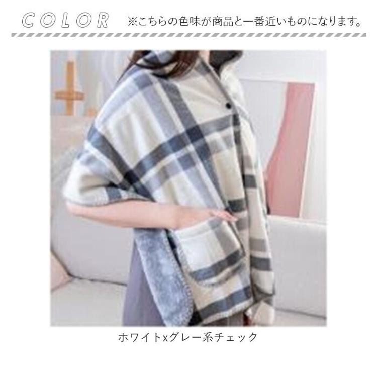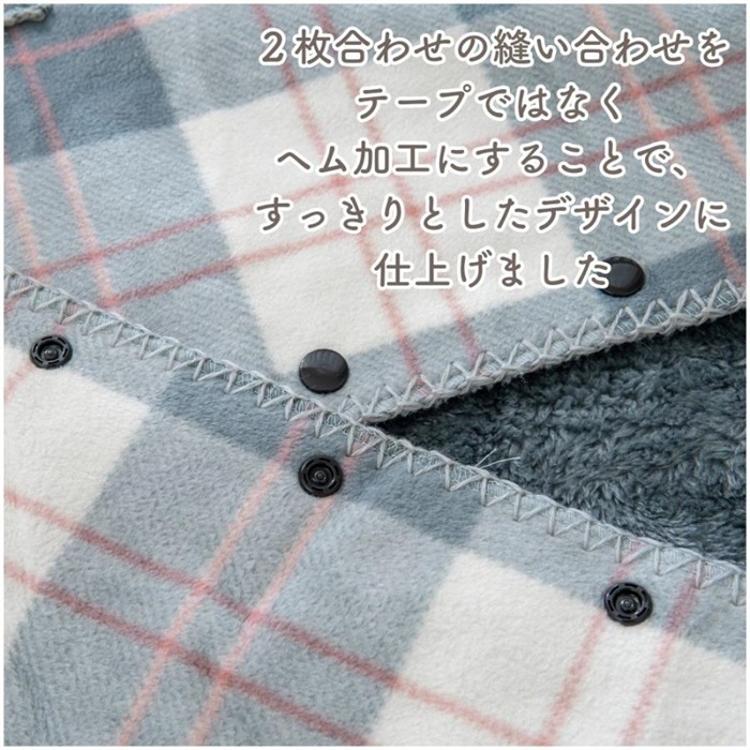 商品名着る毛布 ボタン付きチェック柄ブランケット 50×160cm