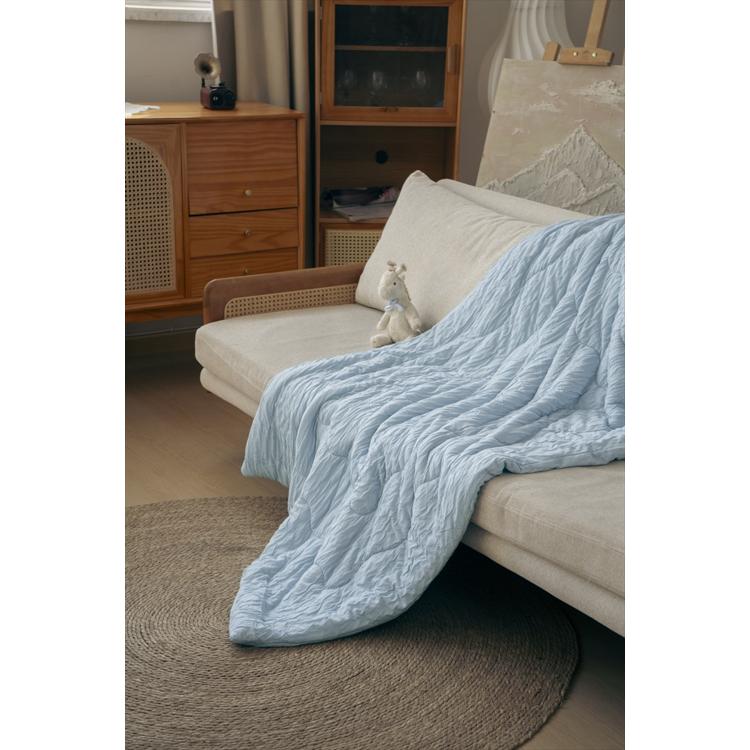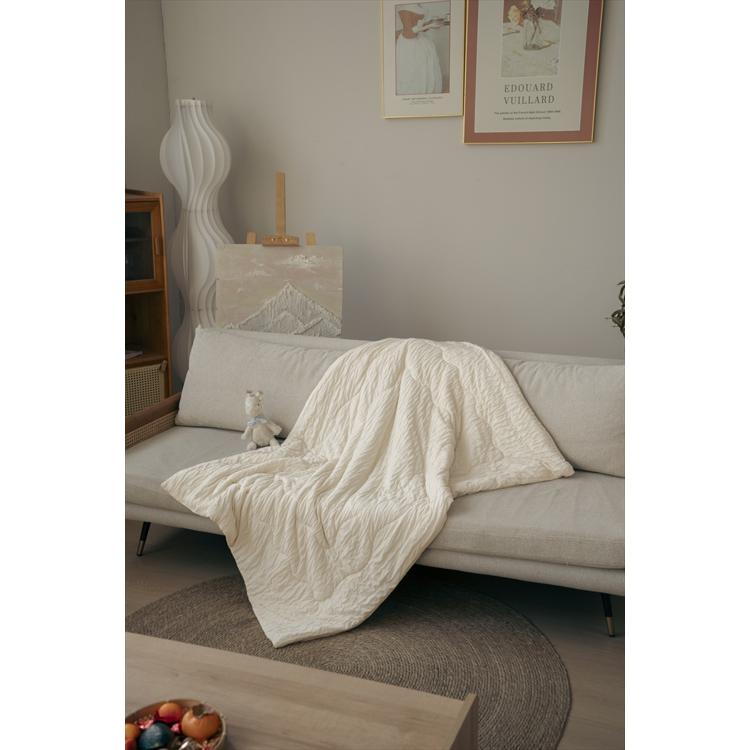 商品説明・こだわりの二重構造で、使えば使うほど体に馴染む、空気をたっぷり含んで軽い、シャーリング加工のレーヨンケット。
