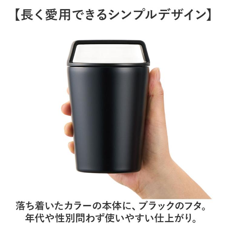 ・落ち着いたカラーの本体に、ブラックのフタ。年代や性別問わず使いやすい仕上がり。