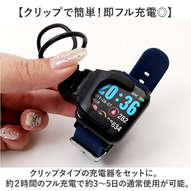 ・クリップタイプの充電器をセットに。約2時間のフル充電で約3~5日の通常使用が可能。