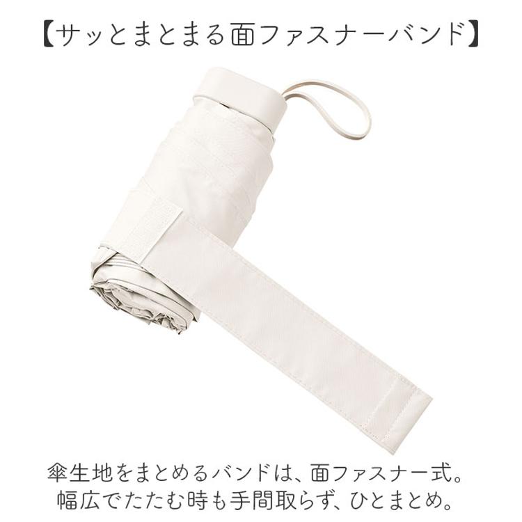 ・傘生地をまとめるバンドは、面ファスナー式。幅広でたたむ時も手間取らず、ひとまとめ。