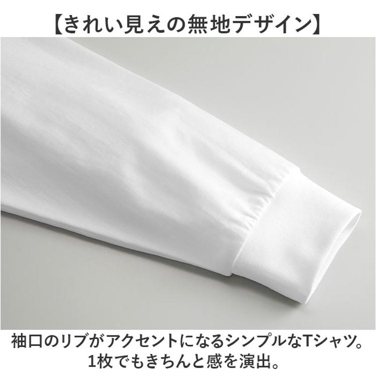 ・袖口のリブがアクセントになるシンプルなTシャツ。1枚でもきちんと感を演出。