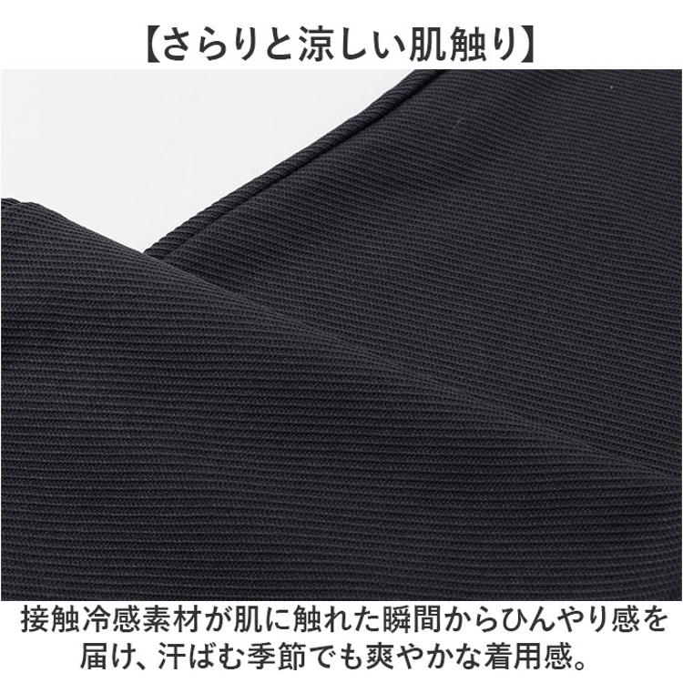 ・接触冷感素材が肌に触れた瞬間からひんやり感を届け、汗ばむ季節でも爽やかな着用感。