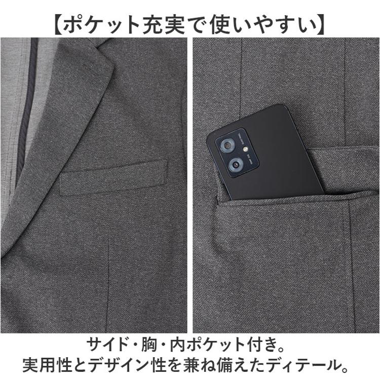 ・サイド・胸・内ポケット付き。実用性とデザイン性を兼ね備えたディテール。