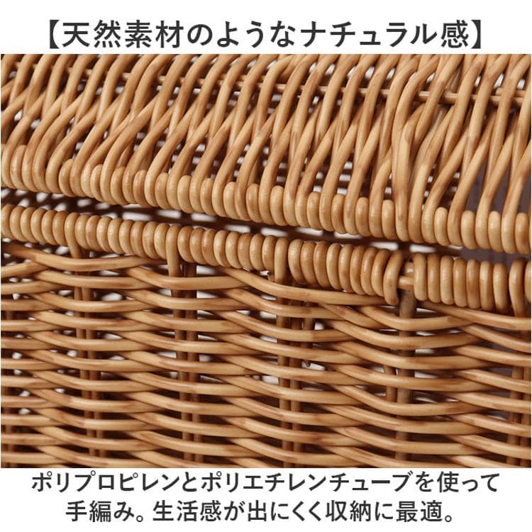 ・ポリプロピレンとポリエチレンチューブを使って手編み。生活感が出にくく収納に最適。