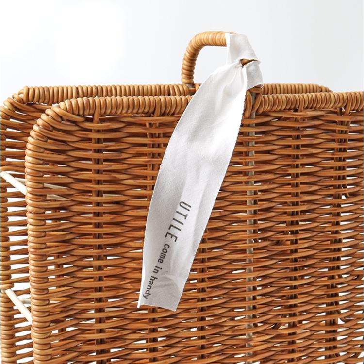 ・天然素材に見えるポリプロピレンとポリエチレンチューブ素材を使った手編みのバスケット。