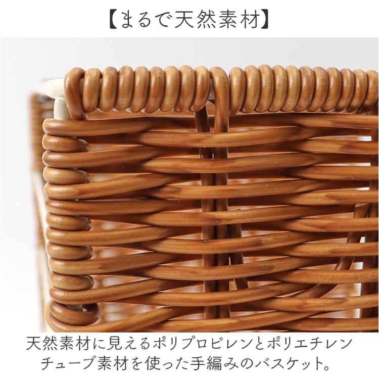 ・天然素材に見えるポリプロピレンとポリエチレンチューブ素材を使った手編みのバスケット。