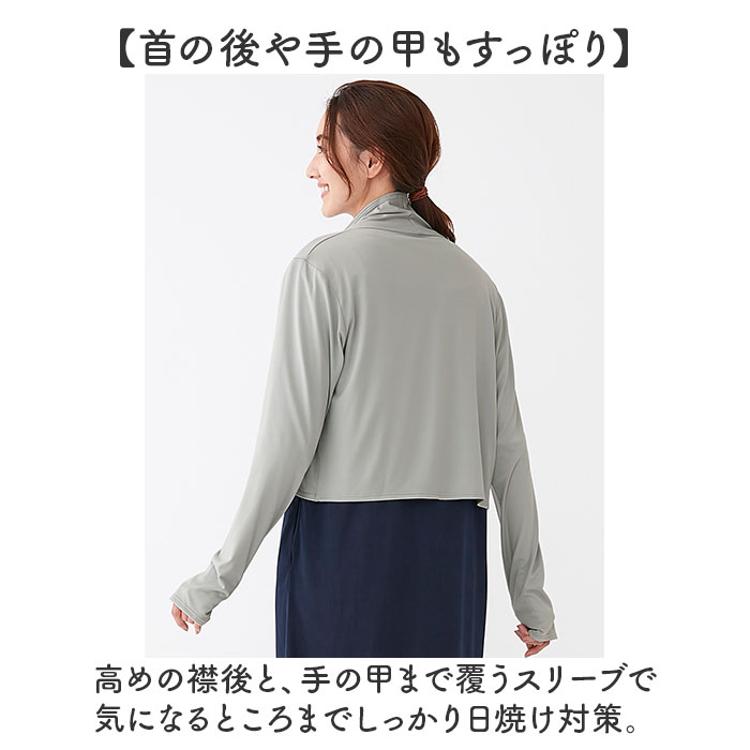 ・高めの襟後と、手の甲まで覆うスリーブで気になるところまでしっかり日焼け対策。