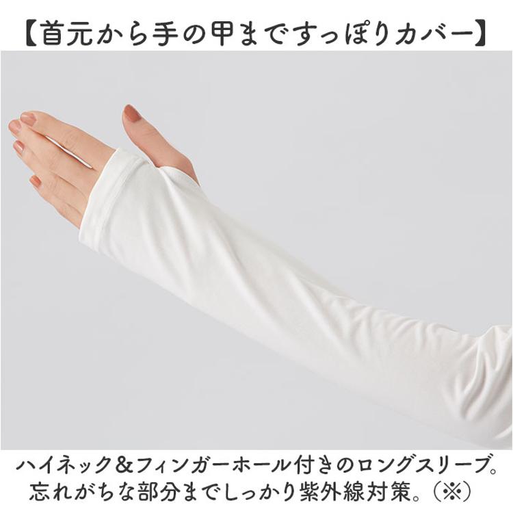 ・ハイネック&フィンガーホール付きのロングスリーブ。忘れがちな部分までしっかり紫外線対策。