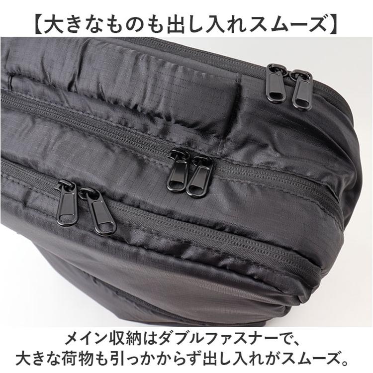 ・メイン収納はダブルファスナーで、大きな荷物も引っかからず出し入れがスムーズ。