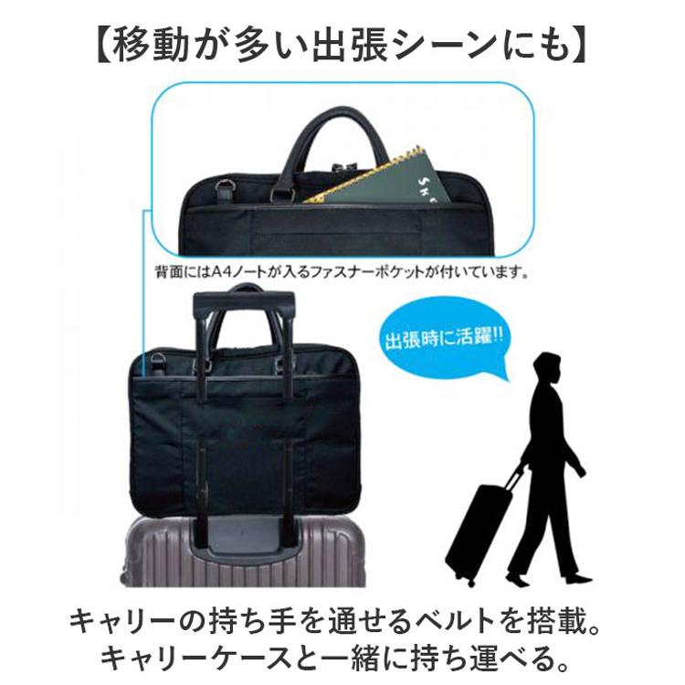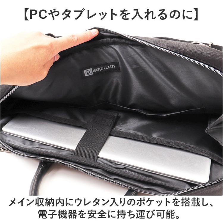 ・A4サイズの書類はもちろん、ノートパソコンも入るサイズでビジネスマンにピッタリなバッグ。