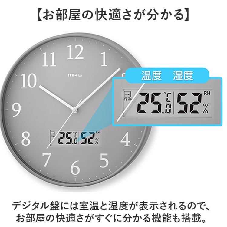 ・デジタル盤には室温と湿度が表示されるので、お部屋の快適さがすぐに分かる機能も搭載。