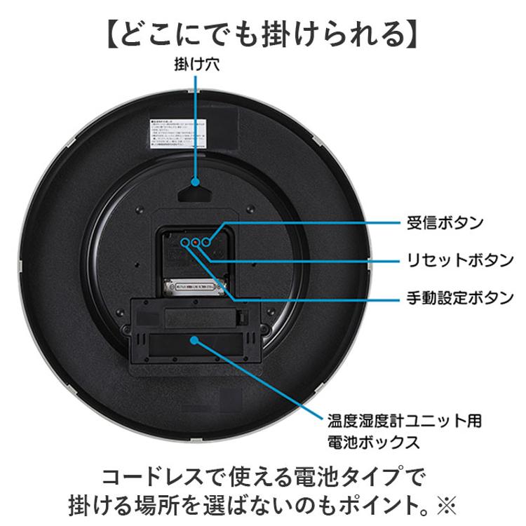 ・コードレスで使える電池タイプで掛ける場所を選ばないのもポイント。※