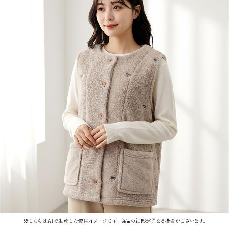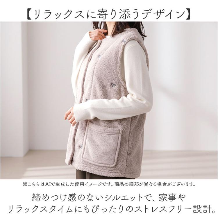 ベスト レディース ルームウェア 通販 刺繍ベスト 部屋着 ジレ トップス ルームウエア 秋 冬 ノースリーブ 上着 カジュアル 大人用 重ね着 おしゃれ 羽織り 前開き ゆったり ふわふわ もこもこ 防寒 寒さ対策