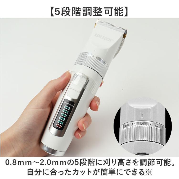 0.8mm~2.0mmの5段階に刈り高さを調節可能。自分に合ったカットが簡単にできる。