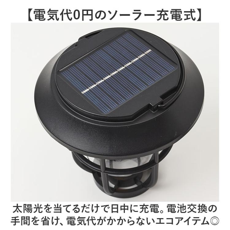 ・暗い場合に常時弱い光で点灯。人などの動きを感知すると、強い光で15~30秒点灯。