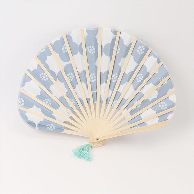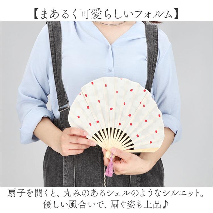 ・扇子を開くと、丸みのあるシェルのようなシルエット。優しい風合いで、扇ぐ姿も上品♪