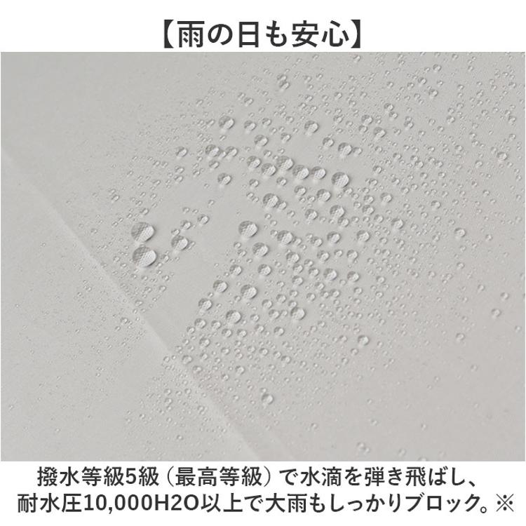 ・撥水等級5級(最高等級)で水滴を弾き飛ばし、耐水圧10,000H2O以上で大雨もしっかりブロック。