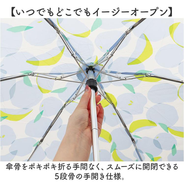 ・傘骨をポキポキ折る手間なく、スムーズに開閉できる5段骨の手開き仕様。