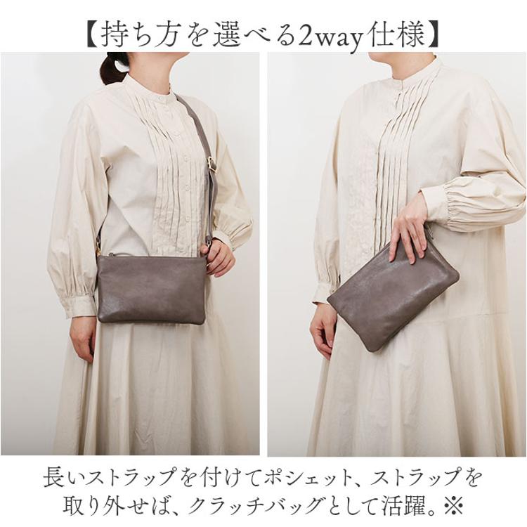 ・長いストラップを付けてポシェット、ストラップを取り外せば、クラッチバッグとして活躍。※