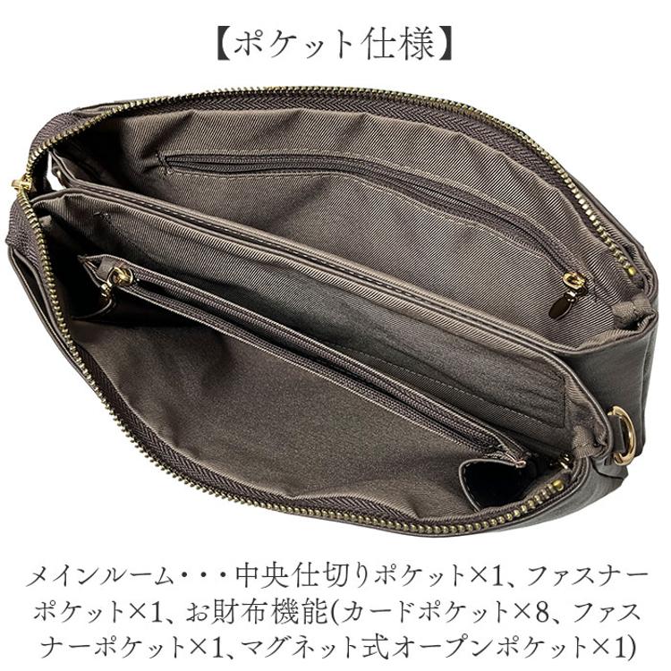・カード収納や現金の収納にピッタリなファスナーポケットを配置し充実な財布機能も魅力。