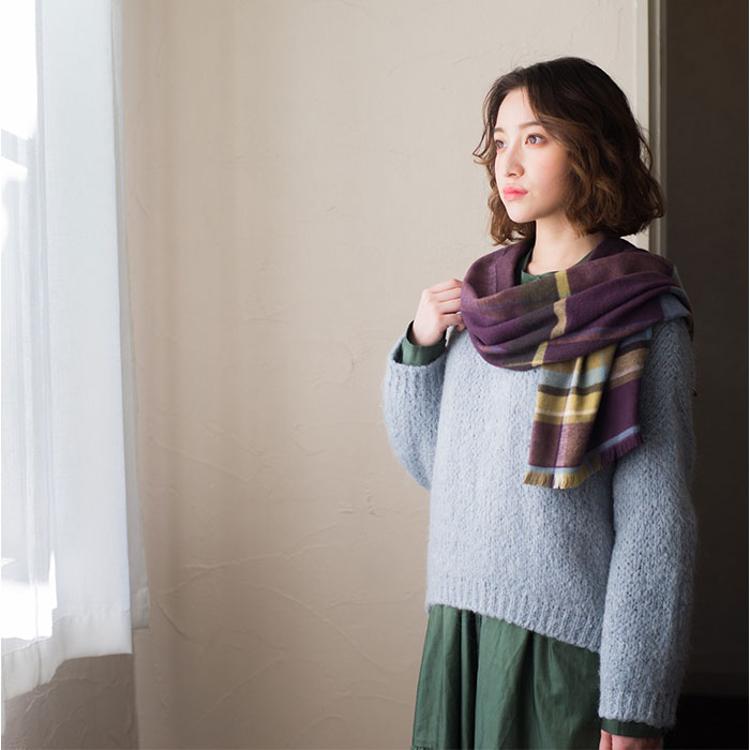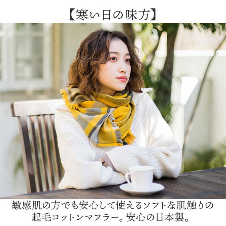 ・敏感肌の方でも安心して使えるソフトな肌触りの起毛コットンマフラー。安心の日本製。